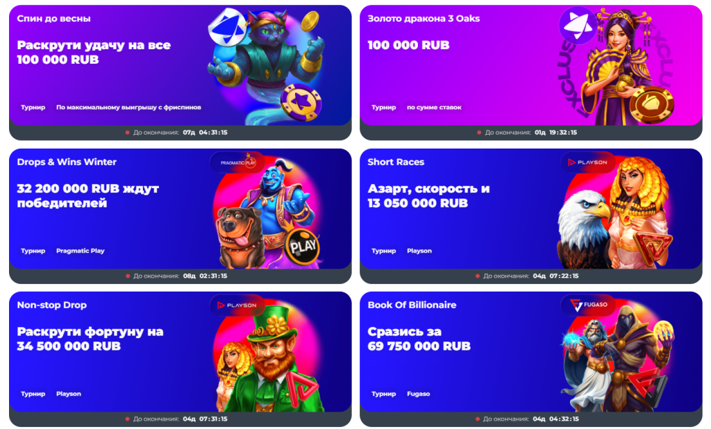 - Слот-турниры: Регулярные соревнования между игроками с многомиллионными призовыми фондами.
